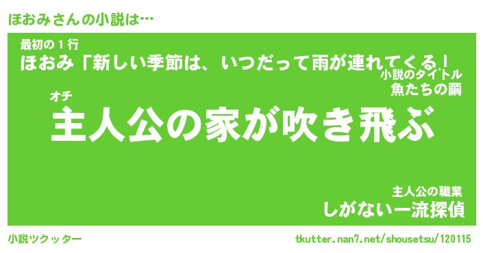 | 魚たちの銀の雨WW …「ケモノ」 | 10月27日 05:47 |