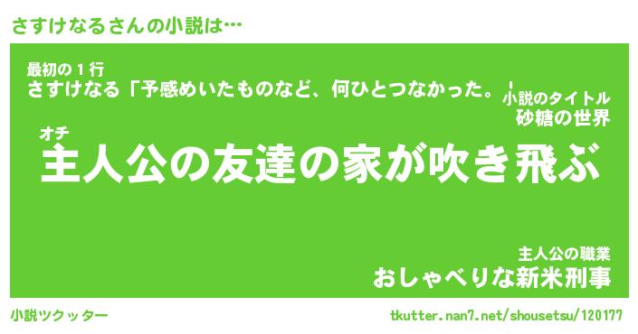 | 男性向けラノベタイトル風あだ名 | 『さすけなるの憂鬱』 |