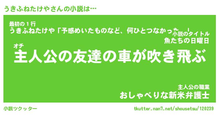 | 男性向けラノベタイトル風あだ名 | 『ウキフネタケヤアートオンライン』 |