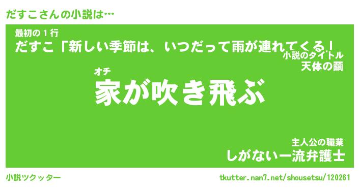 | 胡散臭い通販商品みたいなあだ名 | 『必ず成功する霊験あらたかなお札…その名も「だすこ」』 |