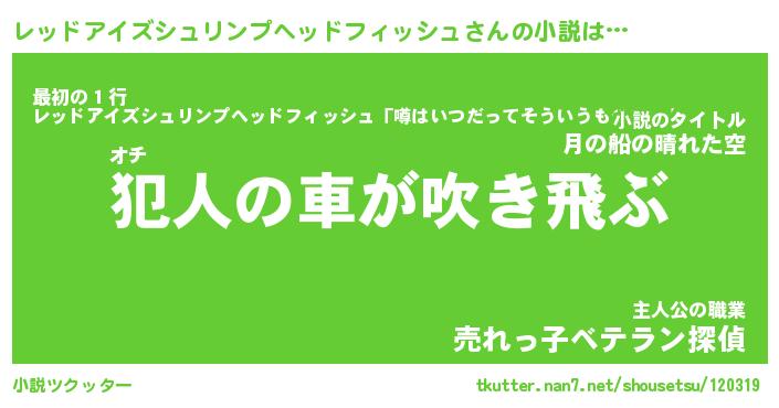 | 男性向けラノベタイトル風あだ名 | 『レッドアイズシュリンプヘッドフィッシュアートオンライン』 |