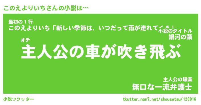 | 胡散臭い通販商品みたいなあだ名 | 『必ず成功する水晶球…その名も「このえよりいち」』 |