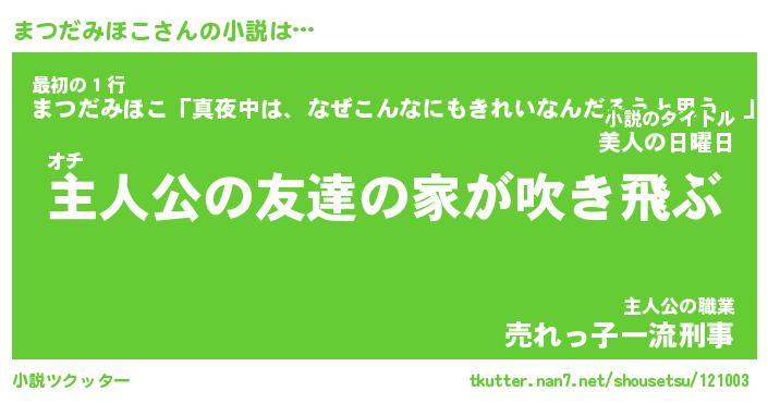 | 男性向けラノベタイトル風あだ名 | 『まつだみほこの憂鬱』 |