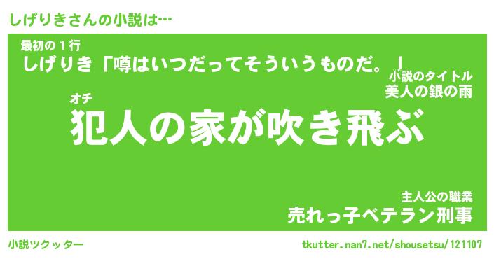 | 魚たちの銀の雨WW …「ケモノ」 | 10月27日 05:47 |