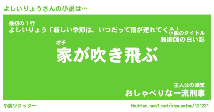 | 男性向けラノベタイトル風あだ名 | 『よしいりょうの憂鬱』 |