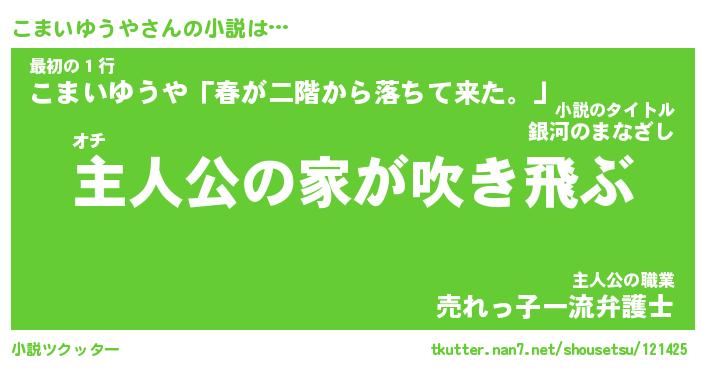 | 胡散臭い通販商品みたいなあだ名 | 『必ず成功するブレスレット…その名も「こまいゆうや」』 |