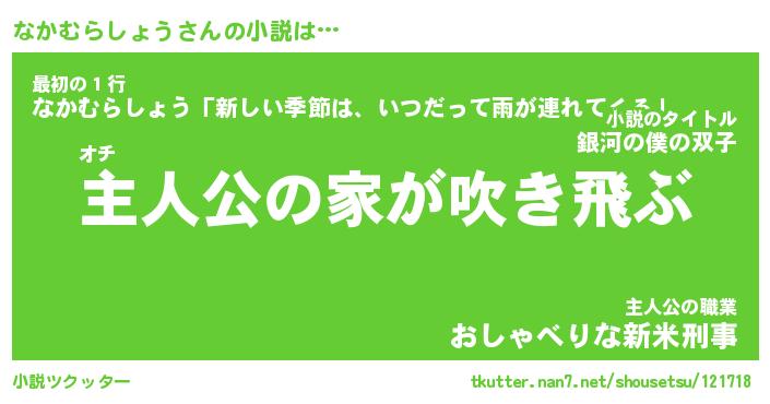 | 男性向けラノベタイトル風あだ名 | 『なかむらしょうの憂鬱』 |
