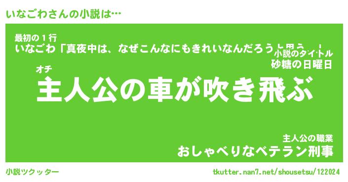 | 男性向けラノベタイトル風あだ名 | 『いなごわの憂鬱』 |