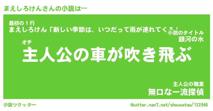 | 男性向けラノベタイトル風あだ名 | 『まえしろけんの憂鬱』 |