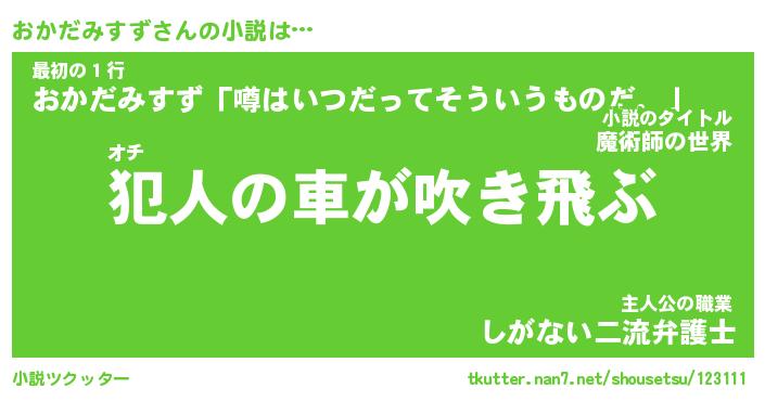 | 男性向けラノベタイトル風あだ名 | 『オカダミスズアートオンライン』 |