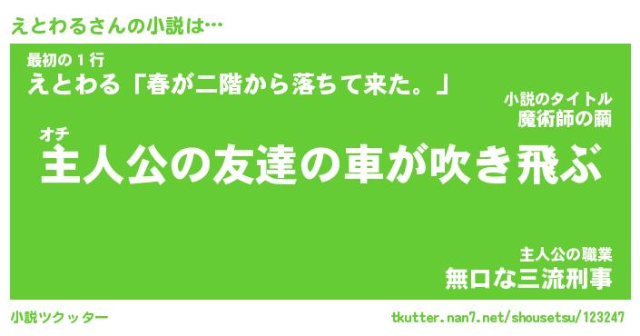 | 胡散臭い通販商品みたいなあだ名 | 『億万長者になれる霊験あらたかなお札…その名も「えとわる」』 |