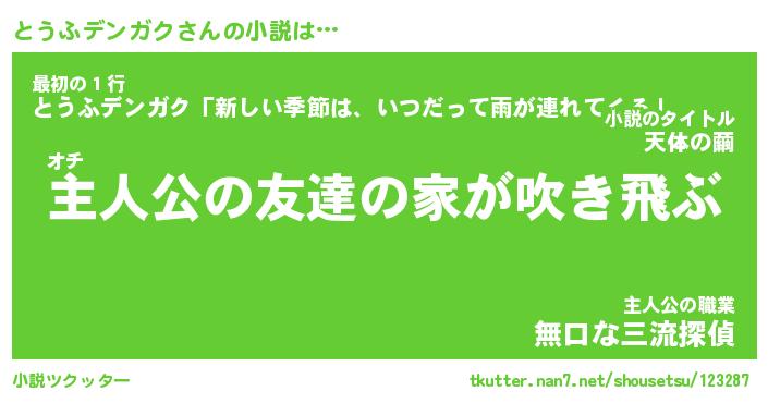 | 胡散臭い通販商品みたいなあだ名 | 『モテモテ間違いなし水晶球…その名も「とうふデンガク」』 |