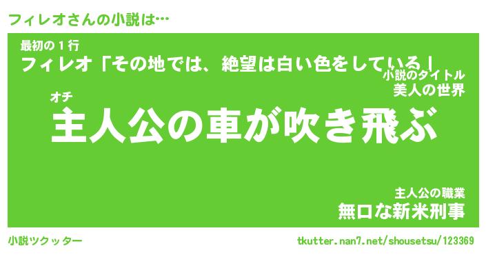 | 男性向けラノベタイトル風あだ名 | 『フィレオの憂鬱』 |