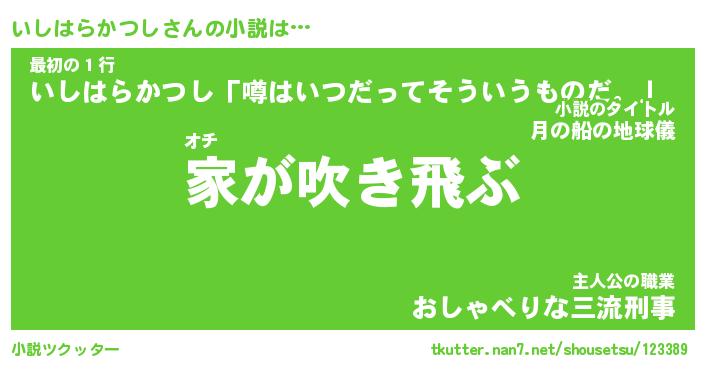 | 男性向けラノベタイトル風あだ名 | 『いしはらかつしの憂鬱』 |
