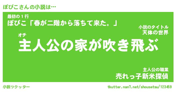 | 男性向けラノベタイトル風あだ名 | 『ぽぴこの憂鬱』 |