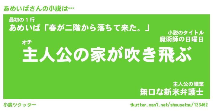 | 男性向けラノベタイトル風あだ名 | 『あめいばの憂鬱』 |