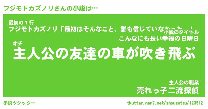 | 女子向けラノベタイトル風あだ名 | 『誰かこのフジモトカズノリを説明してください! ~契約から始まるウェディング~』 |