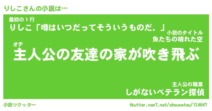 | 魚たちの銀の雨WW …「ケモノ」 | 10月27日 05:47 |