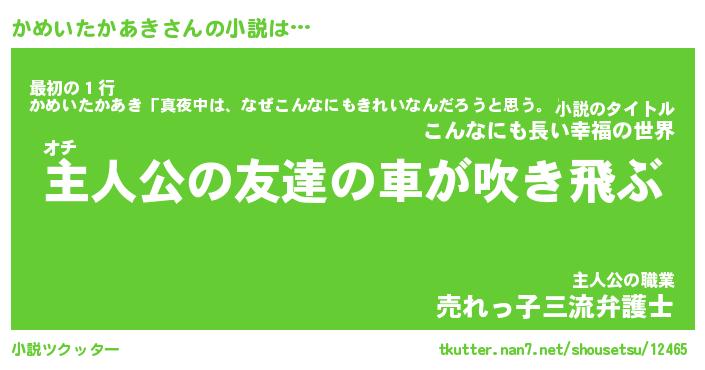 | 男性向けラノベタイトル風あだ名 | 『カメイタカアキアートオンライン』 |