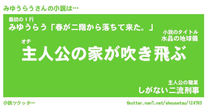 | 男性向けラノベタイトル風あだ名 | 『みゆうらうの憂鬱』 |