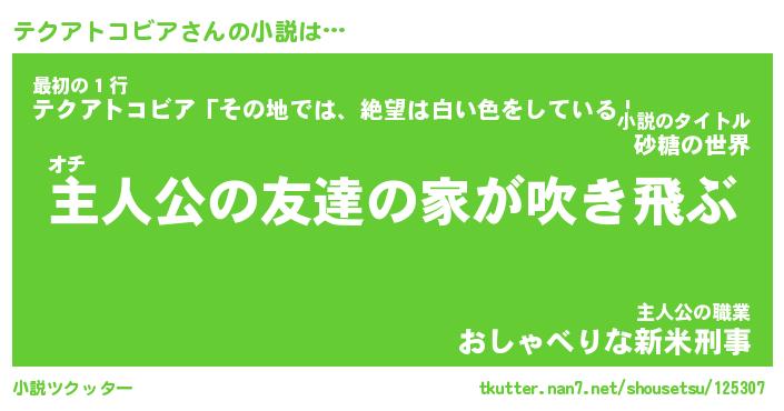 | 男性向けラノベタイトル風あだ名 | 『テクアトコビアの憂鬱』 |