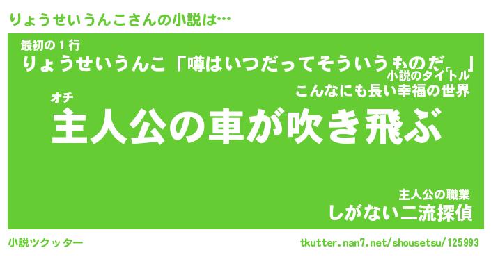 | 男性向けラノベタイトル風あだ名 | 『りょうせいうんこの憂鬱』 |