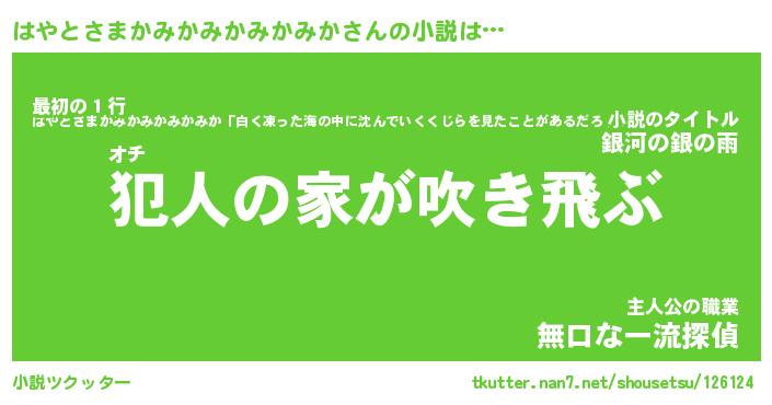 | 胡散臭い通販商品みたいなあだ名 | 『億万長者になれるブレスレット…その名も「はやとさまかみかみかみかみか」』 |