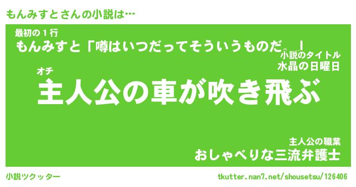 | 男性向けラノベタイトル風あだ名 | 『もんみすとの憂鬱』 |
