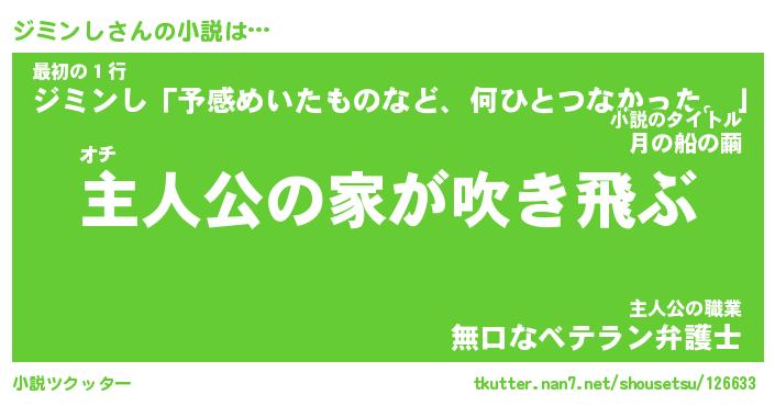 | 男性向けラノベタイトル風あだ名 | 『ジミンしの憂鬱』 |