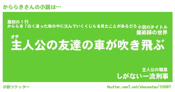| 男性向けラノベタイトル風あだ名 | 『カララキアートオンライン』 |