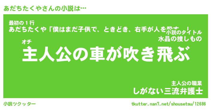 | 男性向けラノベタイトル風あだ名 | 『あだちたくやの憂鬱』 |