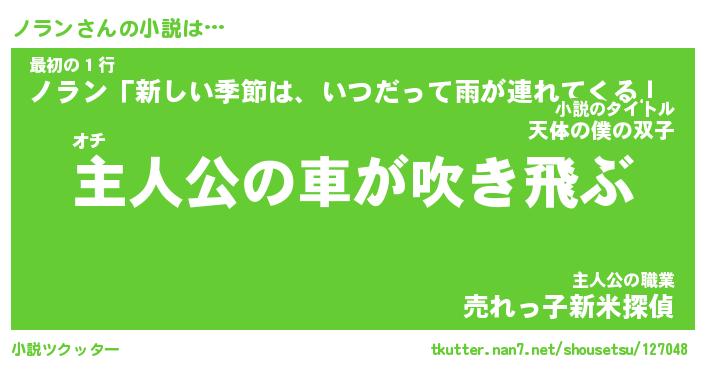| 男性向けラノベタイトル風あだ名 | 『ノランの憂鬱』 |