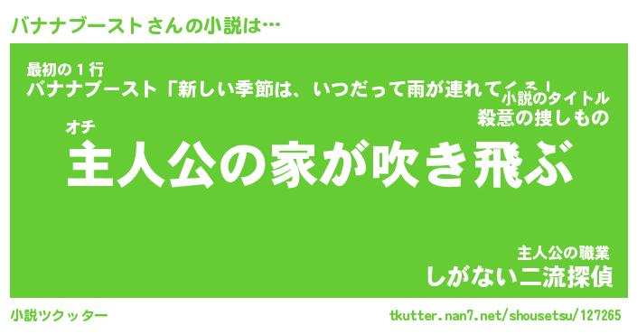 | 男性向けラノベタイトル風あだ名 | 『バナナブーストの憂鬱』 |