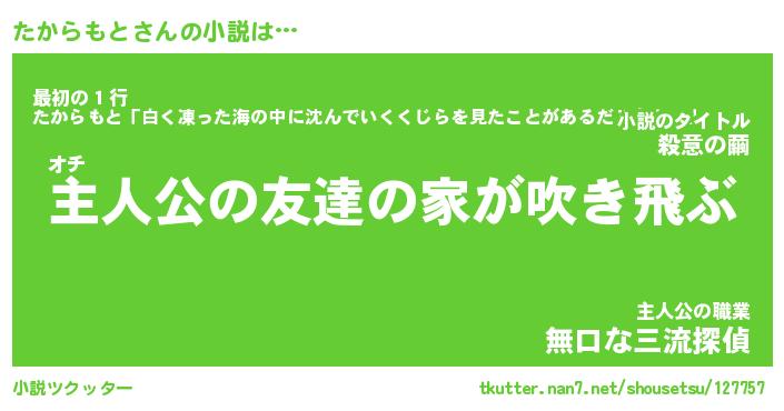 | 男性向けラノベタイトル風あだ名 | 『たからもとの憂鬱』 |