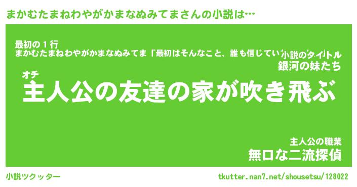 | 男性向けラノベタイトル風あだ名 | 『まかむたまねわやがかまなぬみてまの憂鬱』 |