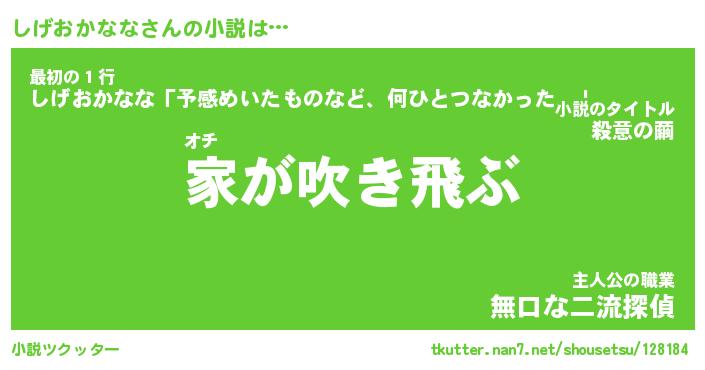 | 男性向けラノベタイトル風あだ名 | 『しげおかななの憂鬱』 |