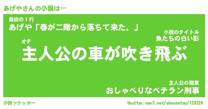 | 男性向けラノベタイトル風あだ名 | 『あげやの憂鬱』 |