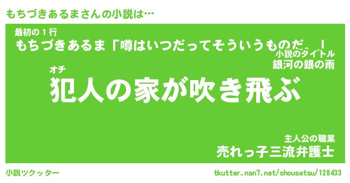 | 魚たちの銀の雨WW …「ケモノ」 | 10月27日 05:47 |