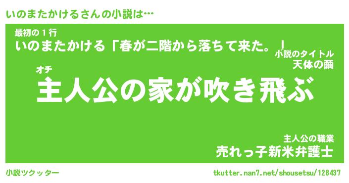 | 男性向けラノベタイトル風あだ名 | 『いのまたかけるの憂鬱』 |