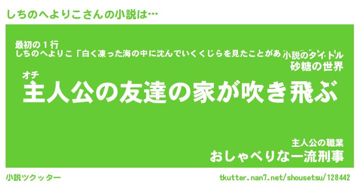 | 男性向けラノベタイトル風あだ名 | 『しちのへよりこの憂鬱』 |