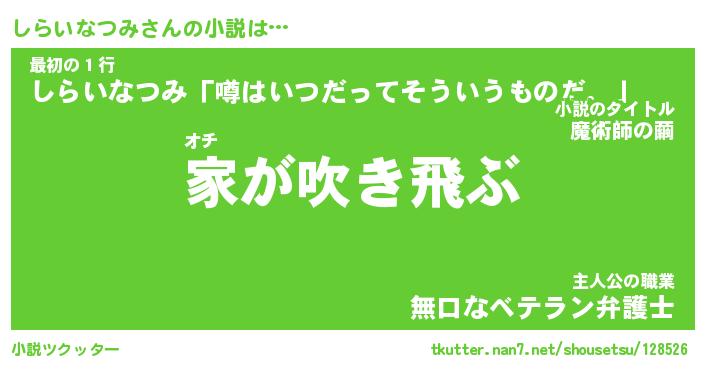| 胡散臭い通販商品みたいなあだ名 | 『必ず成功する霊験あらたかなお札…その名も「しらいなつみ」』 |