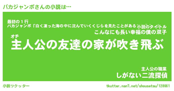 | 男性向けラノベタイトル風あだ名 | 『バカジャンボの憂鬱』 |