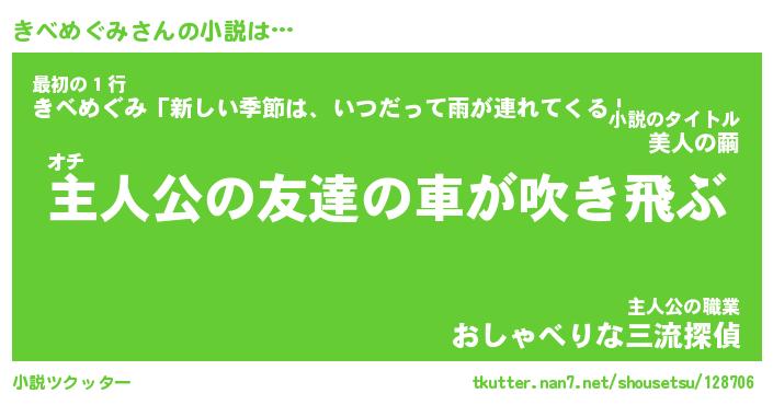 | 男性向けラノベタイトル風あだ名 | 『キベメグミアートオンライン』 |