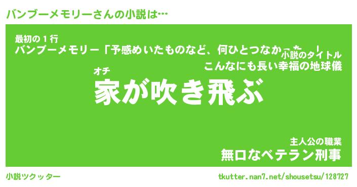 | 男性向けラノベタイトル風あだ名 | 『バンブーメモリーの憂鬱』 |