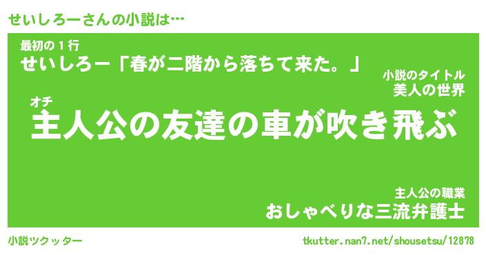 | 胡散臭い通販商品みたいなあだ名 | 『億万長者になれるブレスレット…その名も「せいしろー」』 |