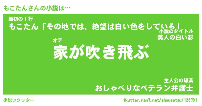 | 男性向けラノベタイトル風あだ名 | 『もこたんの憂鬱』 |