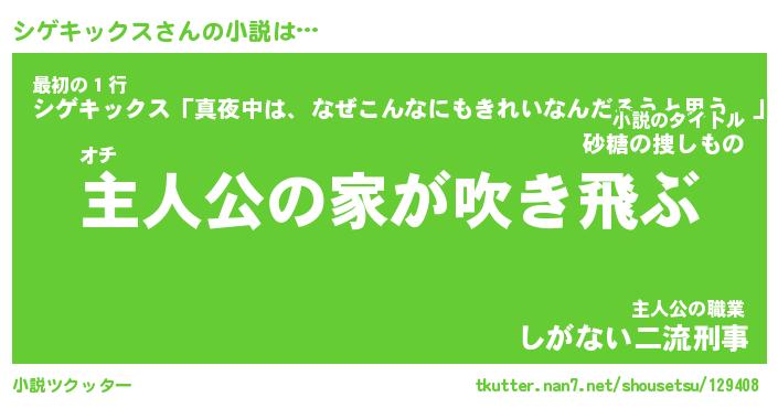 | 男性向けラノベタイトル風あだ名 | 『シゲキックスの憂鬱』 |