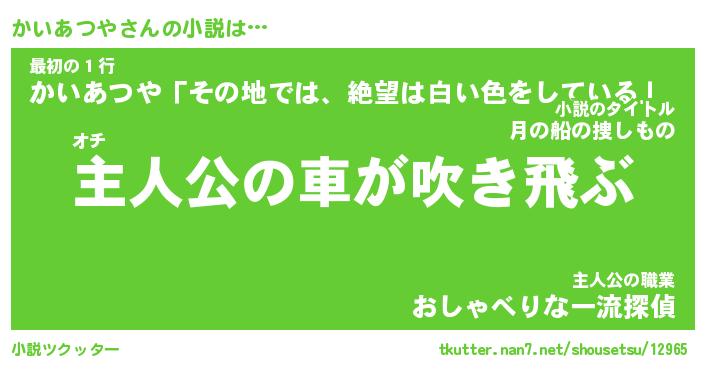 | 男性向けラノベタイトル風あだ名 | 『かいあつやの憂鬱』 |