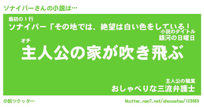 | 男性向けラノベタイトル風あだ名 | 『ソナイパーの憂鬱』 |