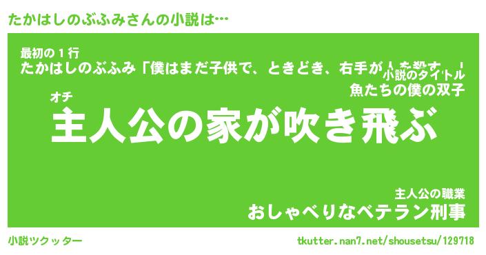 | 男性向けラノベタイトル風あだ名 | 『たかはしのぶふみの憂鬱』 |